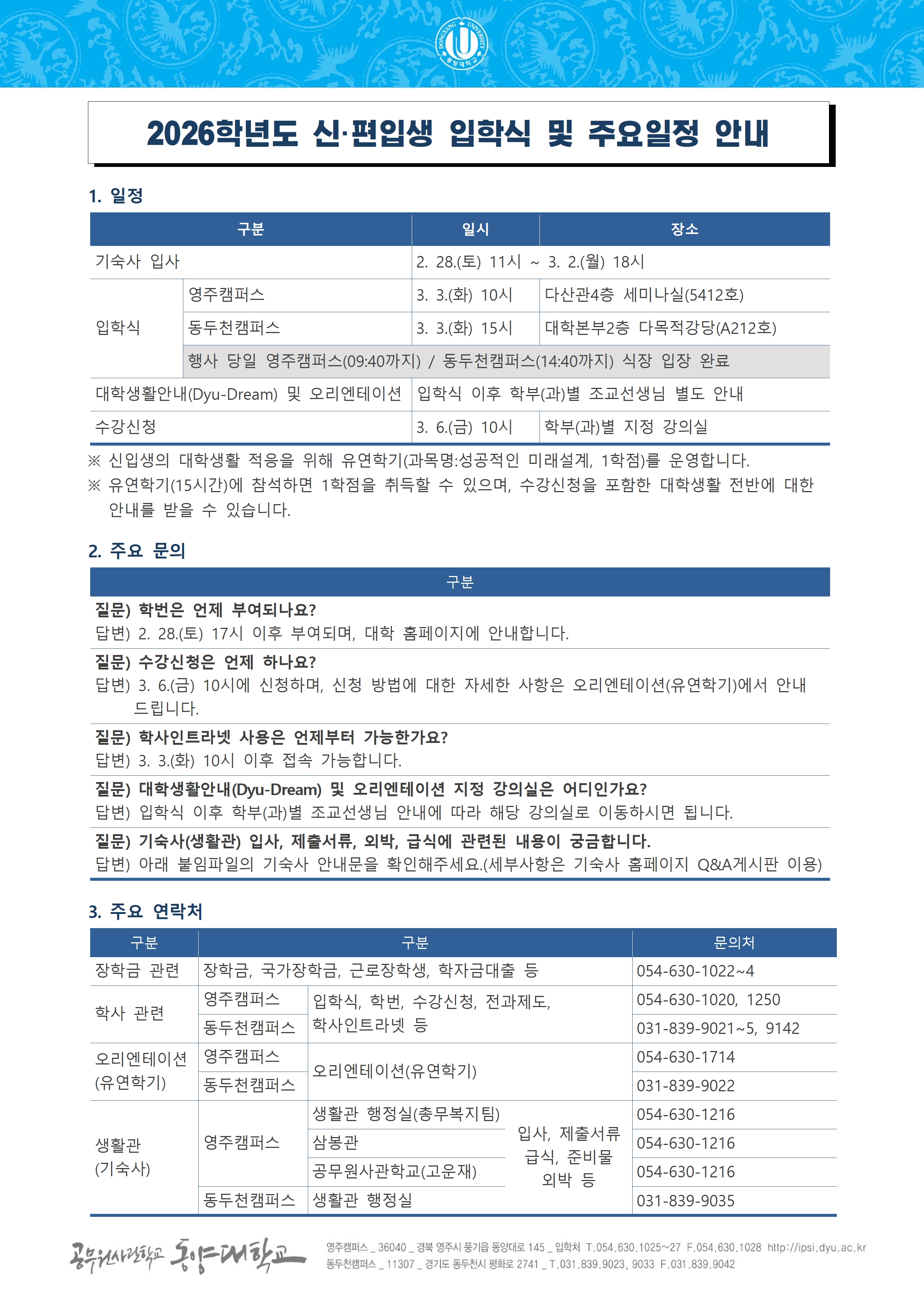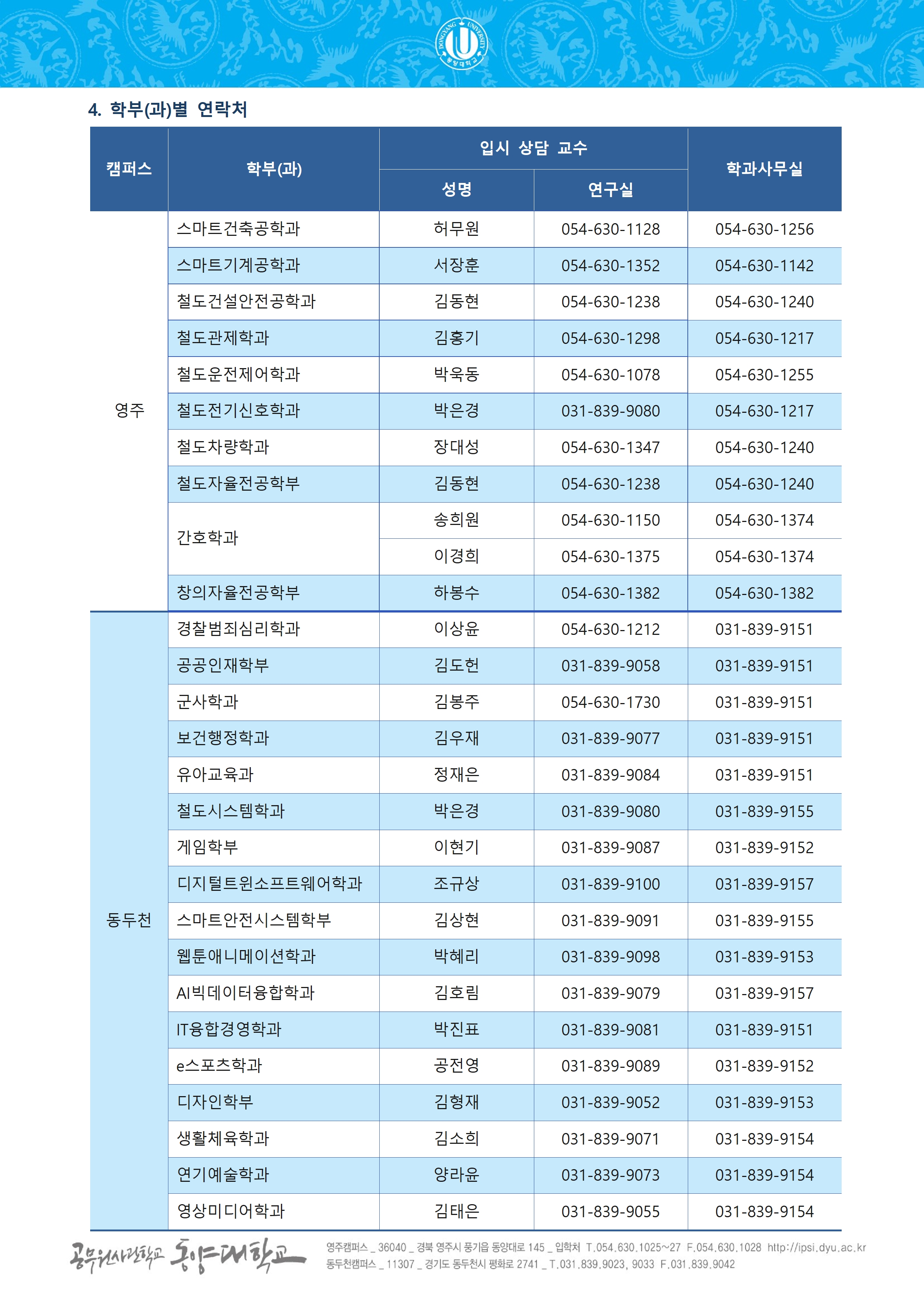 영주캠퍼스 공지사항 바로가기 동두천캠퍼스 공지사항 바로가기
